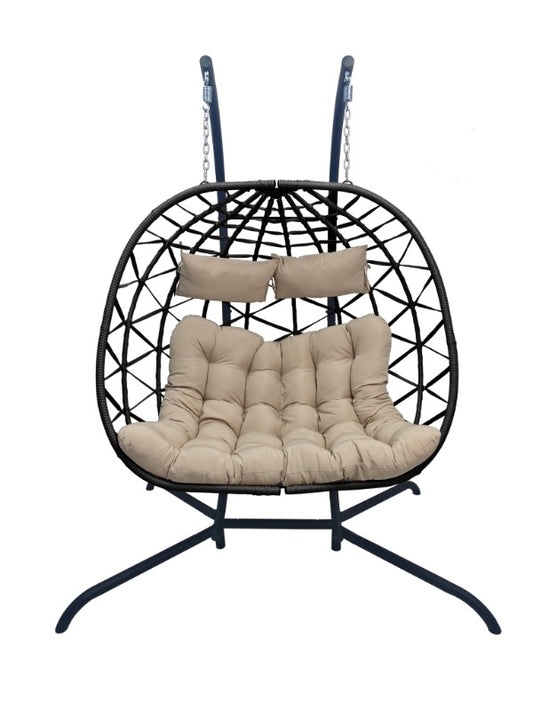 Fotoliu leagan dublu, suspendat, cu perne moi, rezistente la UV, structură metalică, pentru interior și exterior Culoare Cos NEGRU